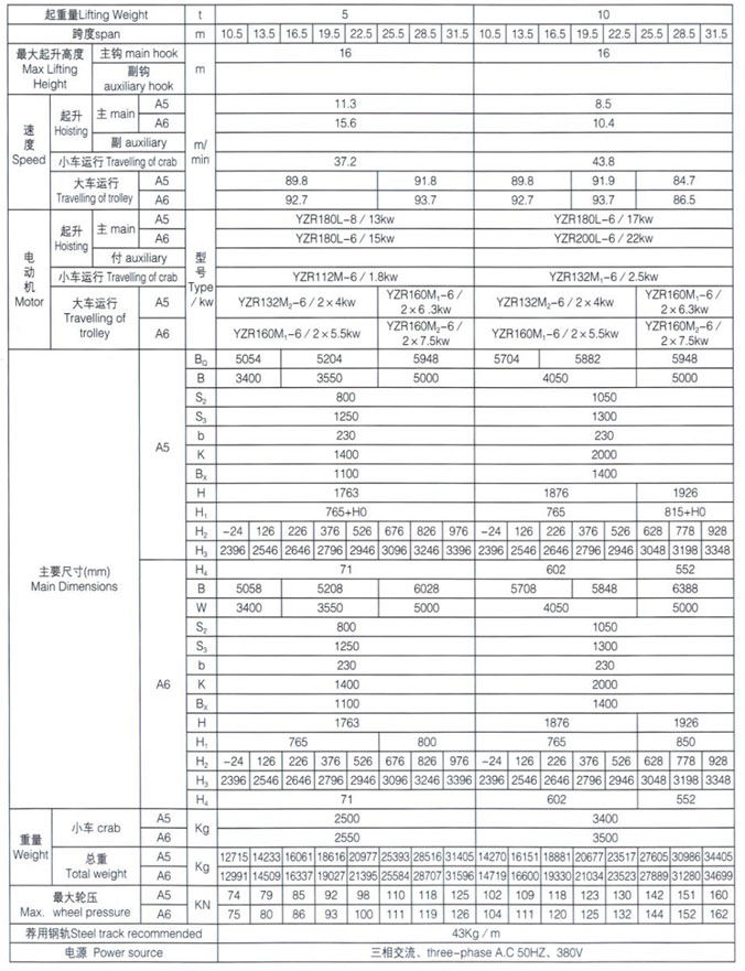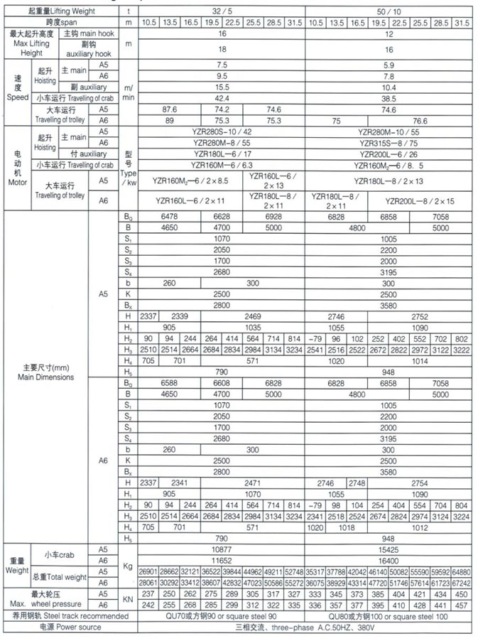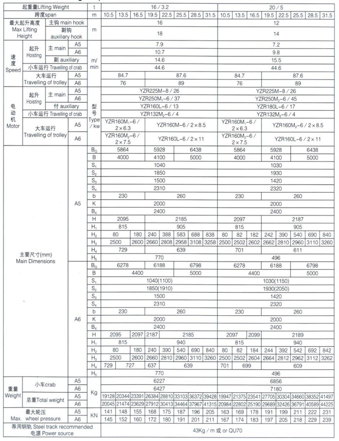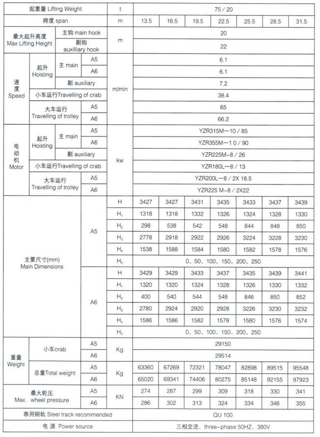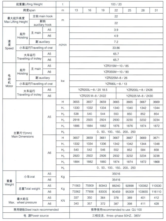 QD型5~100/20t吊鉤橋式起重機(jī)